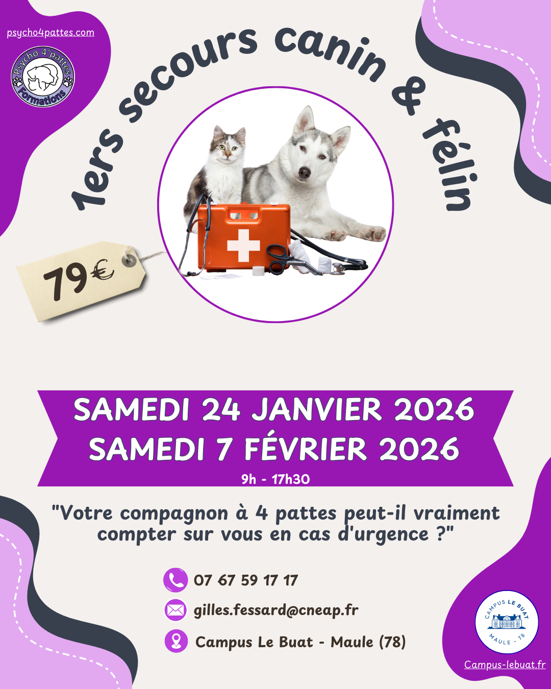 Tarification : 79 Euros payable par CB ou espèces